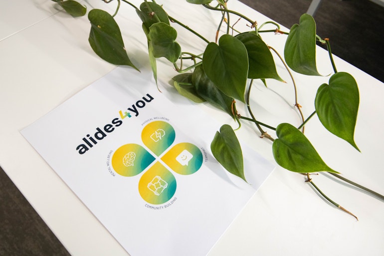 Een welzijnsbeleid met 4 pijlers: fysiek welzijn, mentaal welzijn, team & community building, waar iedereen zijn ideeën en initiatieven kan inbrengen.